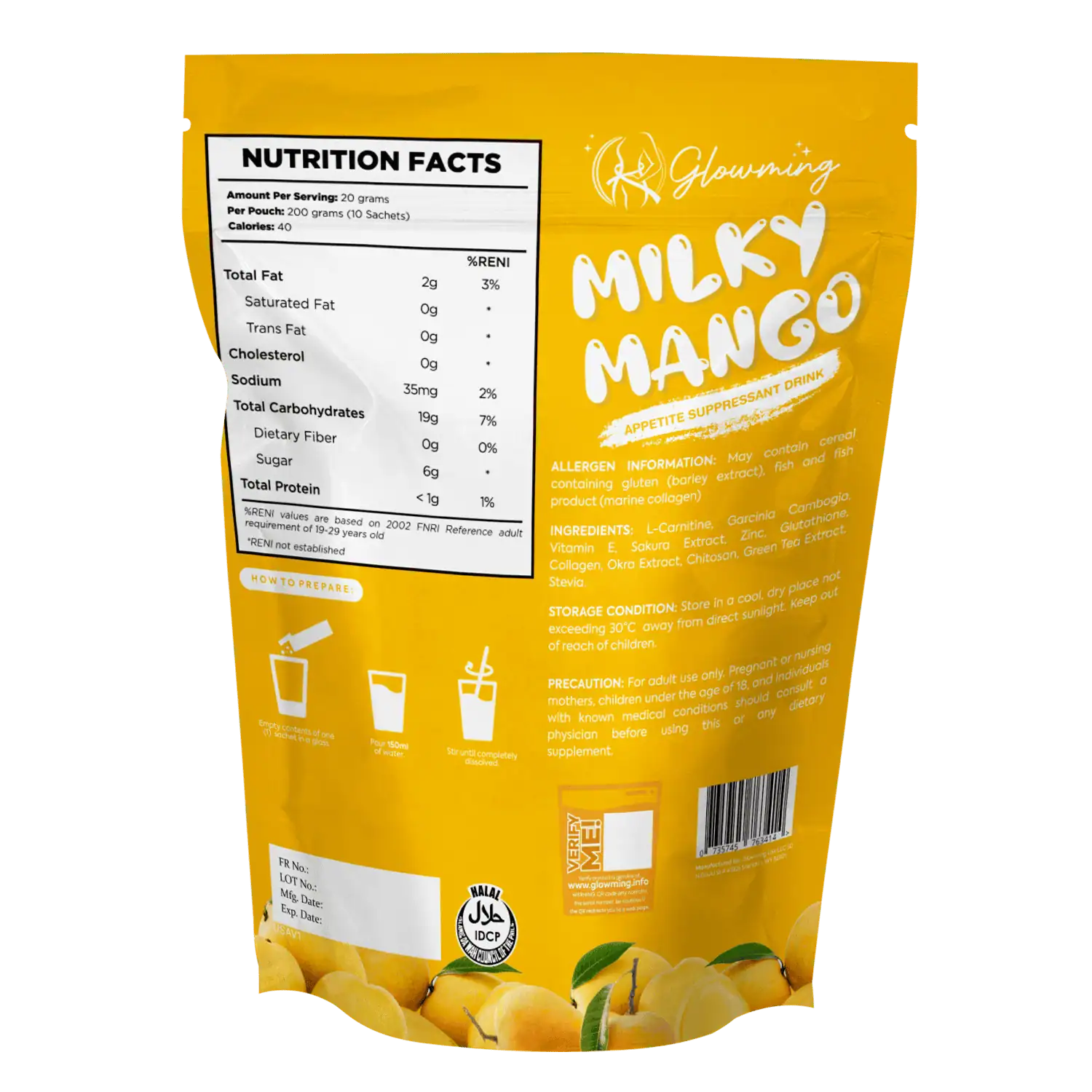 How to use: Take 1 sachet of Milky Mango Drink daily. Mix with 120-150ml of cold water, stir well, and enjoy! For best results, consistency is key—make it part of your daily routine.